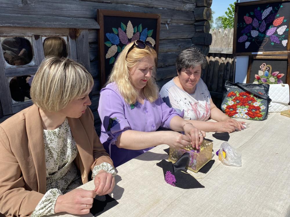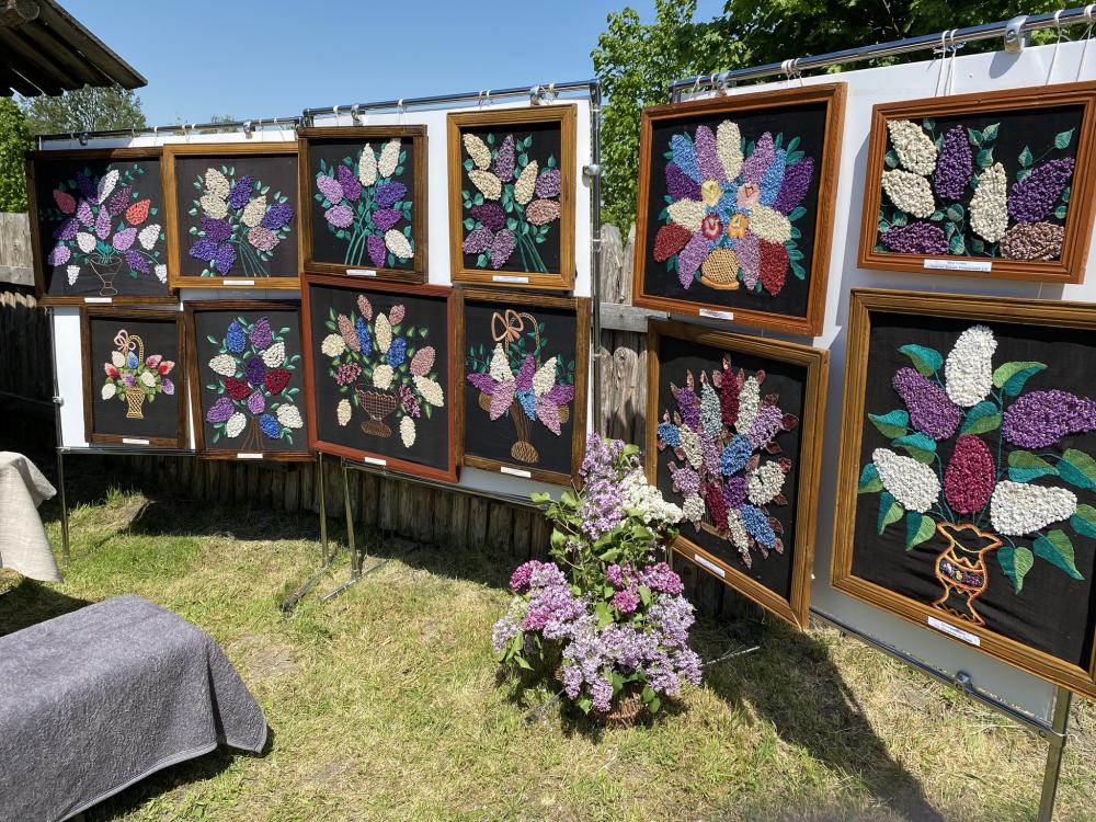 Свої вміння продемонструвала й депутатка Рівненської обласної радиОльга Шустік, яка відтворила методику вишивання бузкових картин.