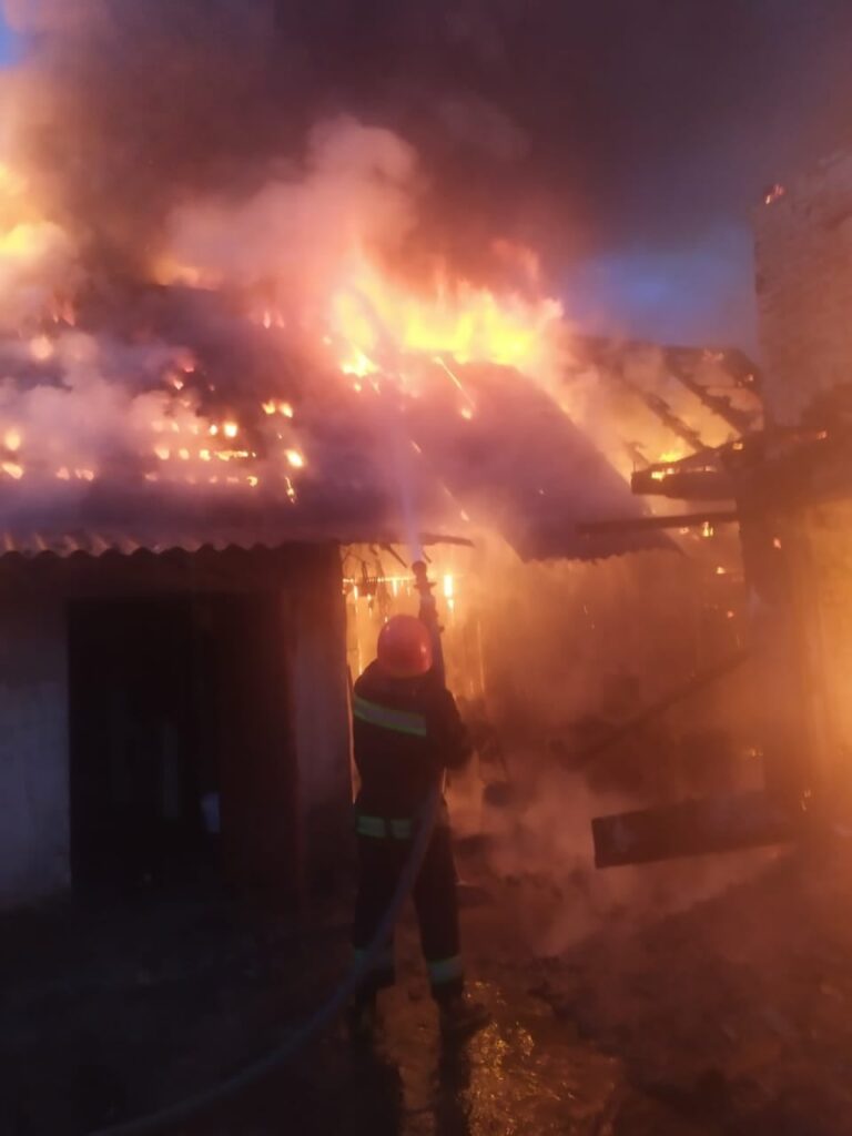 Горіла господарська будівля (цегляна, крита шифером, розміром 8х4м) та недобудований двоповерховий гараж (цегляний, критий шифером розміром 6х5м.). Існувала загроза поширення вогню на поряд розташований житловий будинок.