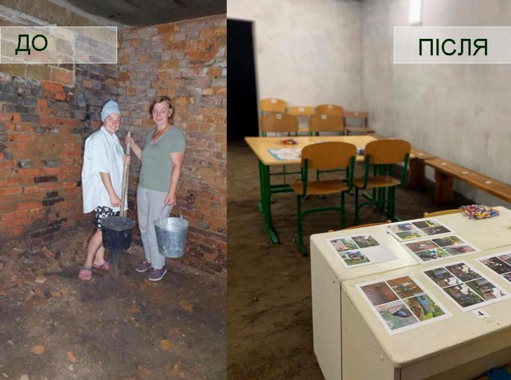 Втім, адміністрація закладу знайшла вихід та вирішила відновити занедбане сховище, яке розташоване в приміщенні майстерні на подвір’ї школи. Роботи по відновленню тривали не один місяць – тут вивезли кілька автівок землі та будівельного сміття. До розбирання завалів та облаштування сховища долучились колектив школи, гімназисти разом з батьками та працівники комунального підприємства Крупецької сільської ради.