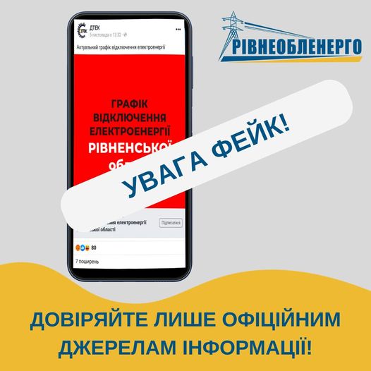 У соцмережах вкотре поширили фейк про графіки відключень електроенергії на Рівненщині.