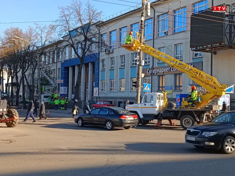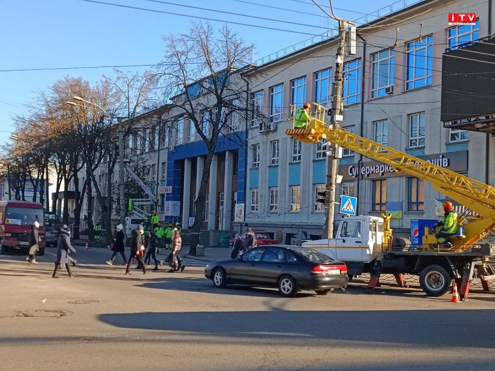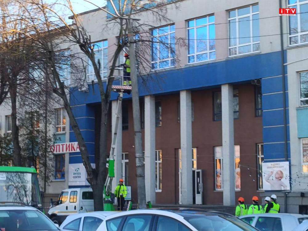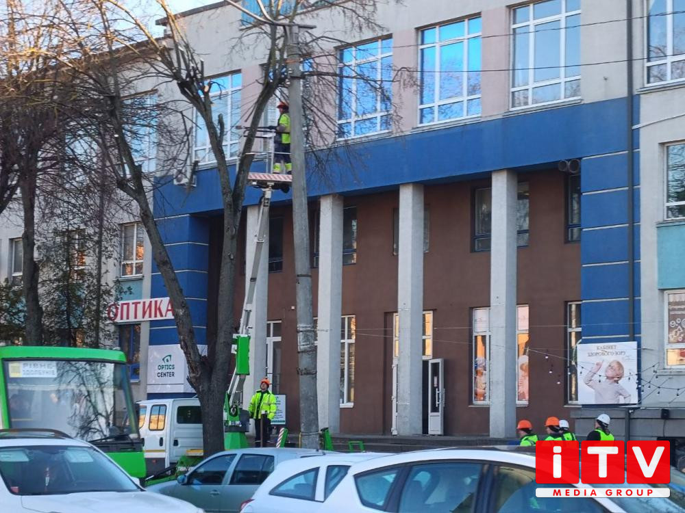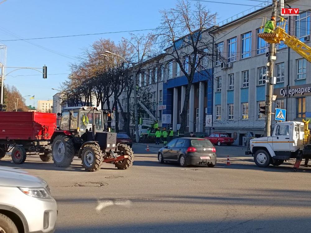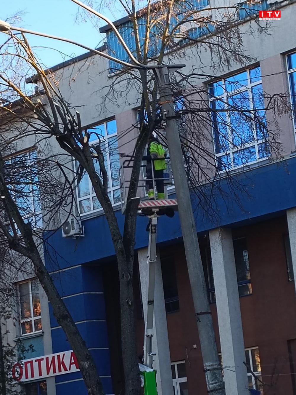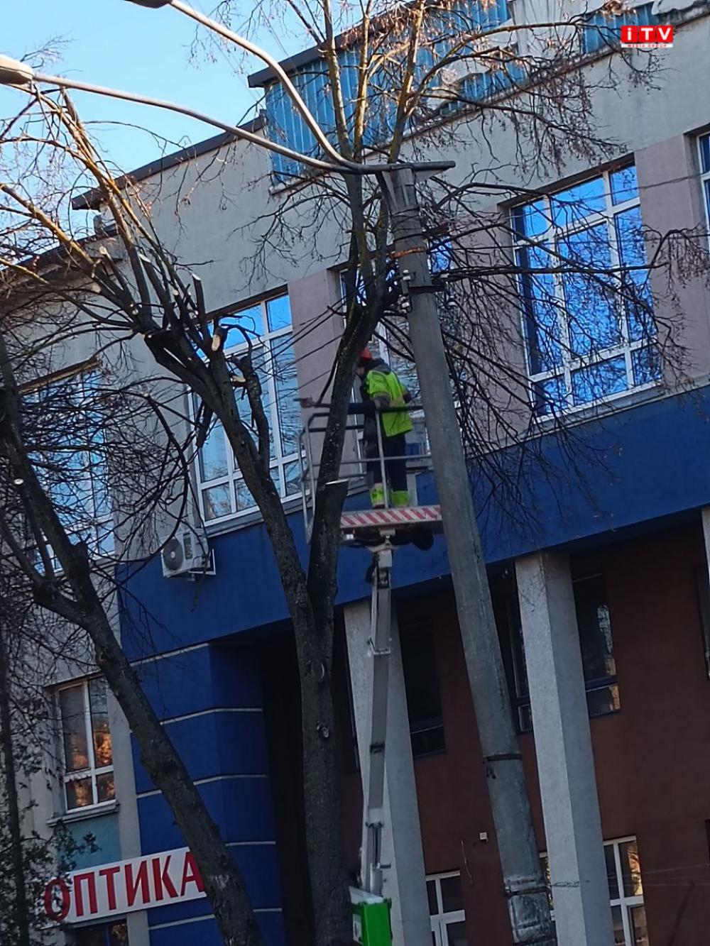 У центрі Рівного біля Укрпошти обрізають гілки дерев.