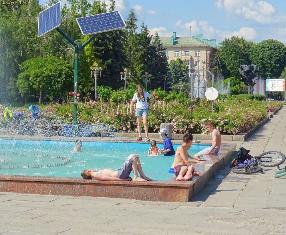 Найвигадливіші купаються у фонтані, який знаходиться за кінопалацом. Так, вчора діти пірнали у прохолодну воду.