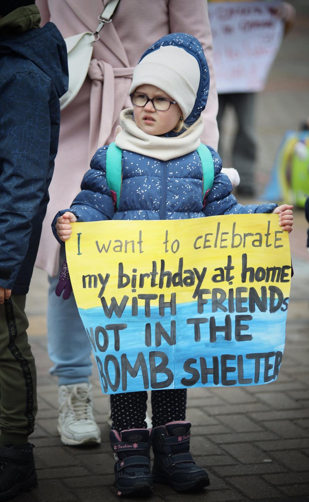 "Вони також підготували антивоєнні плакати: "Я люблю свою країну!", "Хочу слухати на ніч казку, а не сирени", "Хочу на Великдень до бабусі в село, а не біженцем в Польщу", "Хочу спати у своєму ліжку, а не в бомбосховищі", - йдеться у повідомленні.
