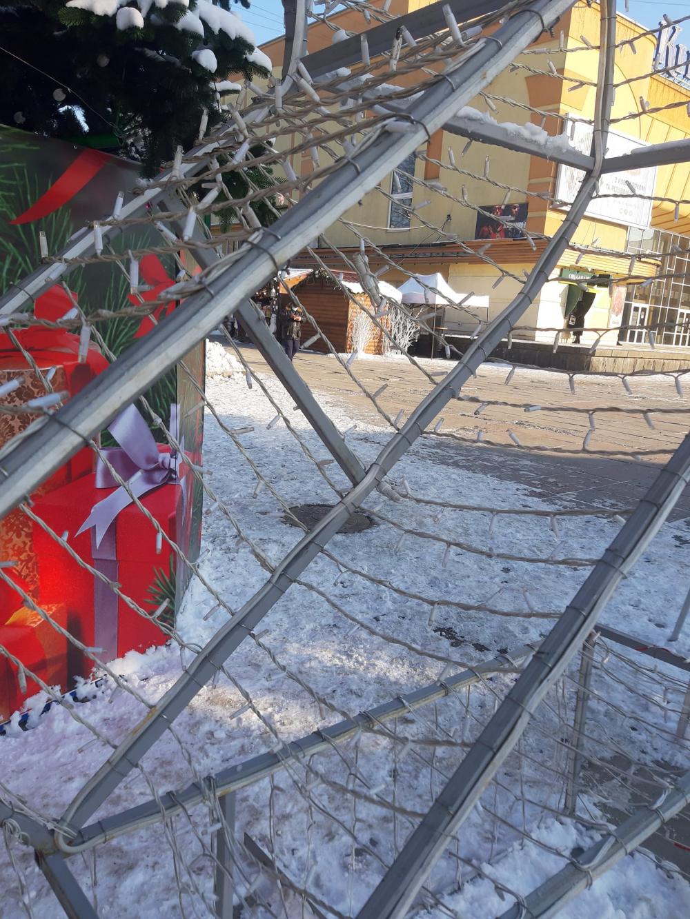 Вже вдруге у Рівному на майдані Незалежності пошкодили новорічну фотозону 2022.