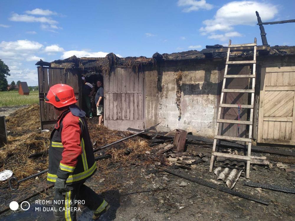 Горіла господарська споруда на території приватного господарства. До прибуття рятувальників місцеві жителі гуртом намагалися гасити вогонь та рятували худобу, техніку та майно з будівлі.