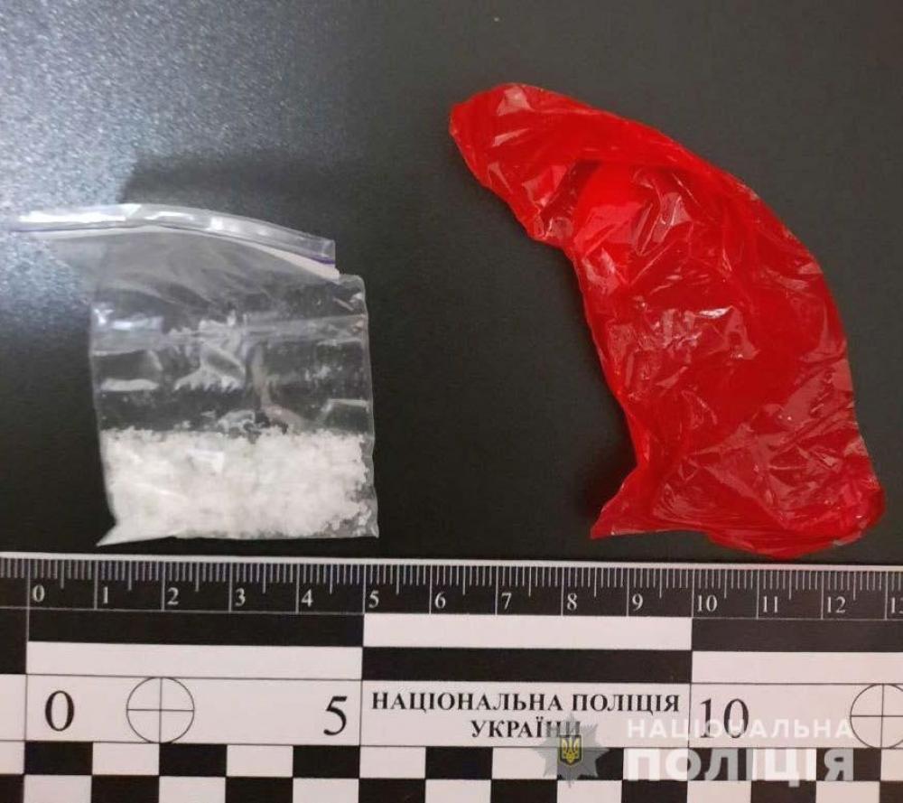 Під час перевірки та огляду двох кімнат, у яких перебували п’ятеро осіб, двоє із яких — неповнолітні, поліцейські виявили 640 закладок із наркотичними засобами та психотропними речовинами загальною вагою близько 200 грамів, один згорток із марихуаною, ваги, скотч та пакети для фасування.