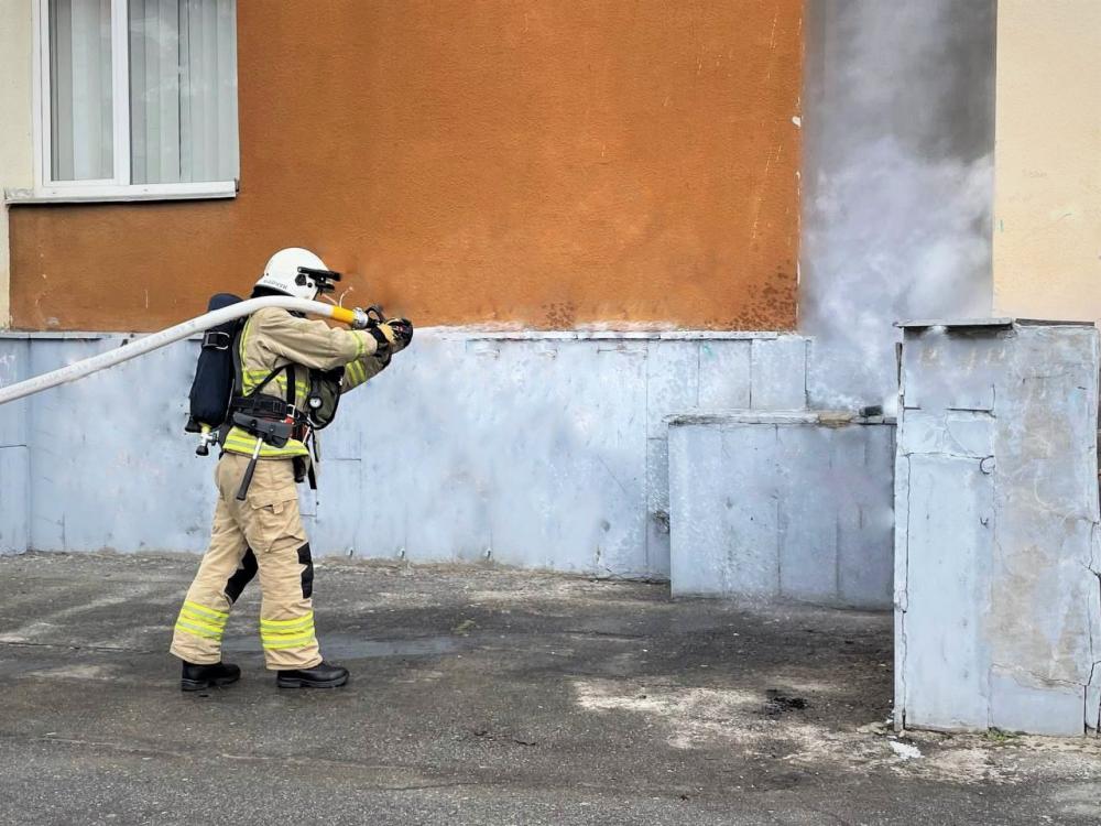 Пожежу біля будівлі, яка виникла внаслідок стрілянини, оперативно ліквідували співробітники ДСНС. До навчальної спецоперації, ініційованої ЗСУ, були залучені також підрозділи нацгвардії, патрульної поліції та медики.