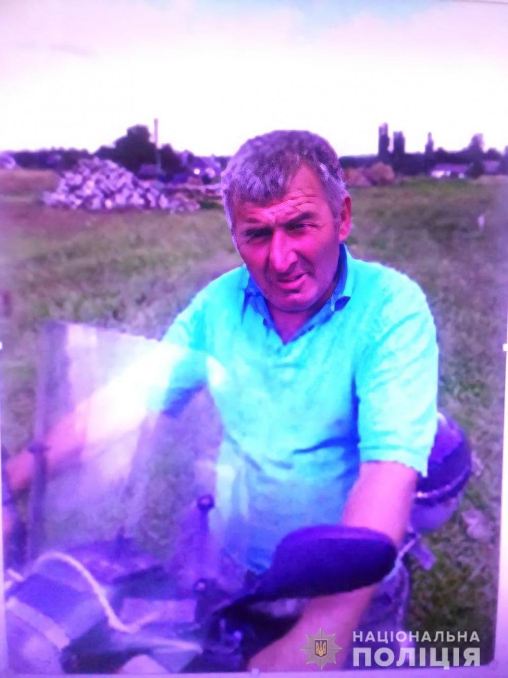 Чоловік середнього зросту, худорлявої тіло будови, волосся сиве – коротке. Був одягнутий у куртку темного кольору, зелені чоботи, темно-сіру кепку, темно-сірі штани.