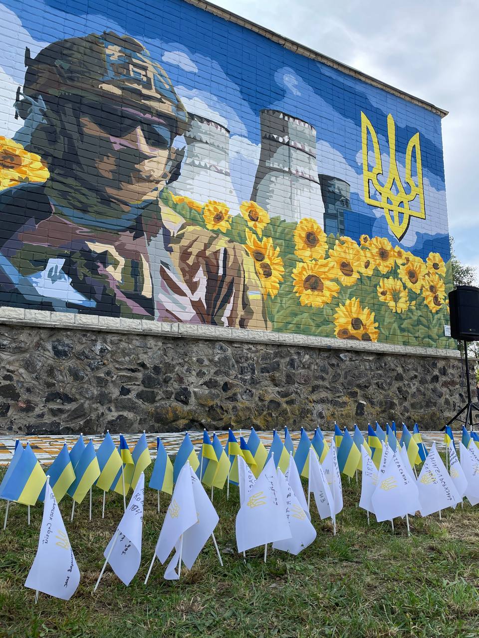 Його присвятили військовим, які боронять нашу країну від загарбників. На стінописі зображений військовий на фоні соняхів та Рівненської АЕС.