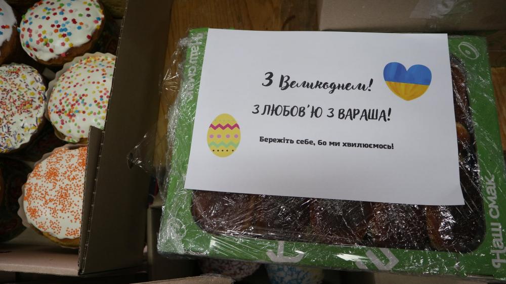 Великодні паски, м’ясні вироби, макарони, олію, борошно, солодощі та інше передадуть у регіони, де відбуваються бойові дії. До процесу випікання пасок долучилися усі заклади освіти Вараської громади. Волонтерський штаб сформував додатково гостинці з продуктовими наборами. Ще одним подарунком стануть композиції та малюнки, котрі підготували вараські діти для захисників-воїнів. Сподіваємось, що така підтримка від Вараської громади допоможе відчути свято й на полі бою.