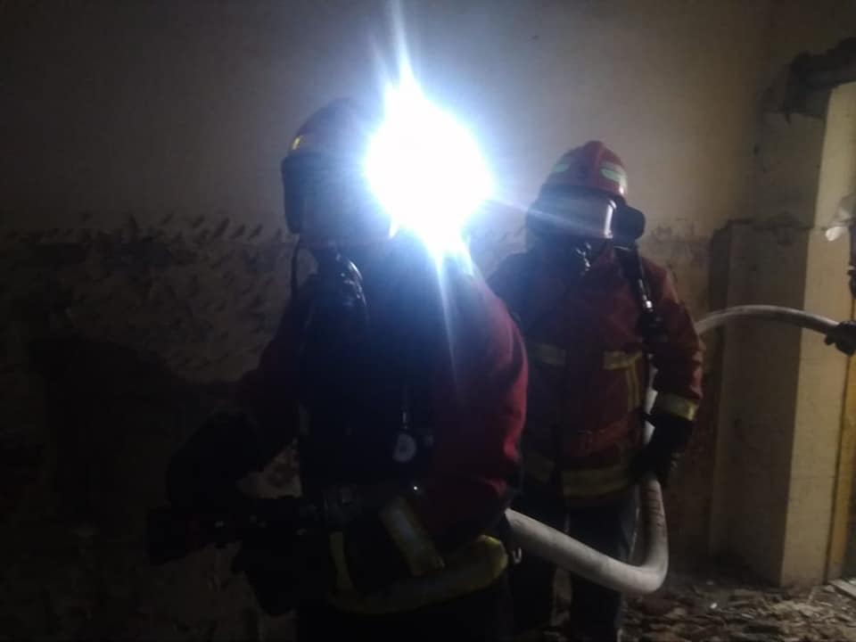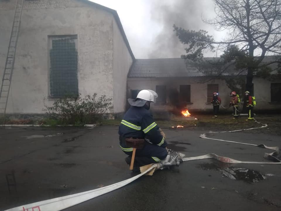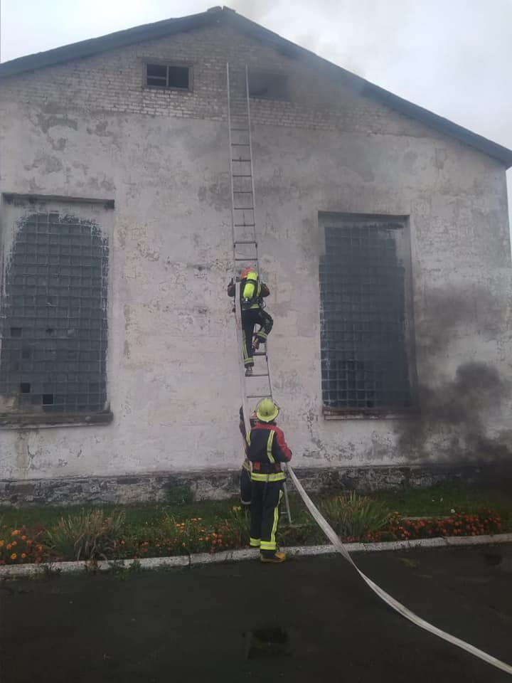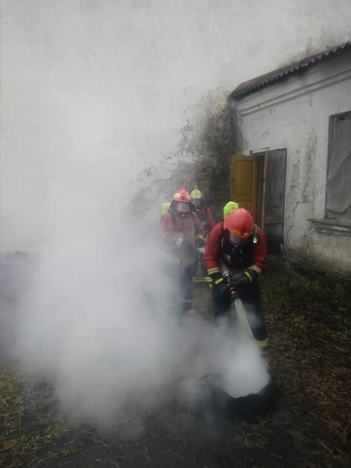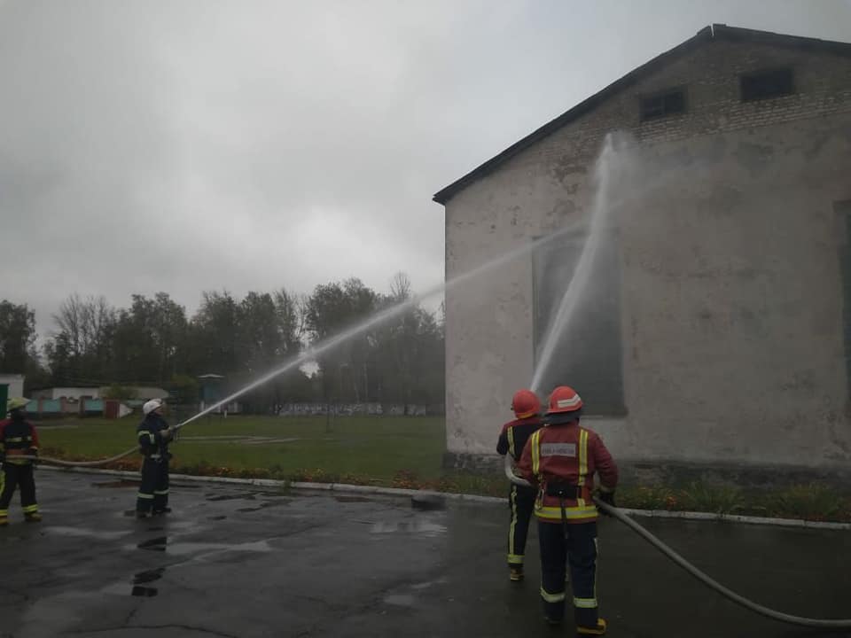 Під час навчань рятувальники ліквідували загоряння горища складу зберігання господарських товарів з пошуком потерпілих та евакуацією матеріальних цінностей за допомогою ручних пожежних драбин та пожежу на відкритій території з загрозою розповсюдження на склад твердого палива.