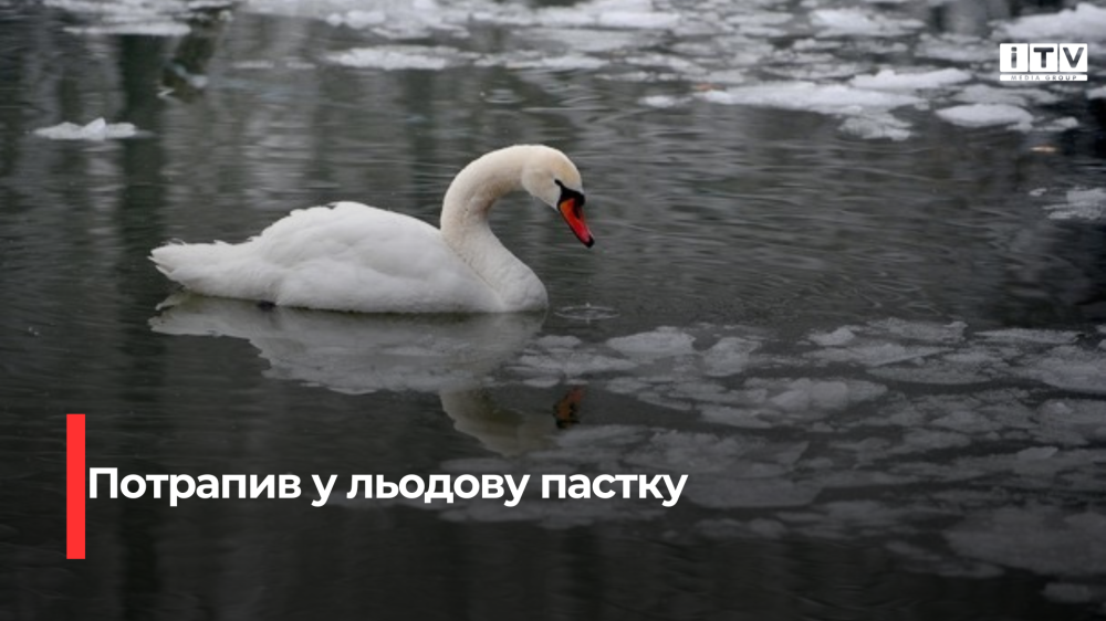 У Здолбунові лебідь примерз до льоду на гідропарку.Вночі температура повітря опускалася до –10°, тож птах опинився в пастці криги.