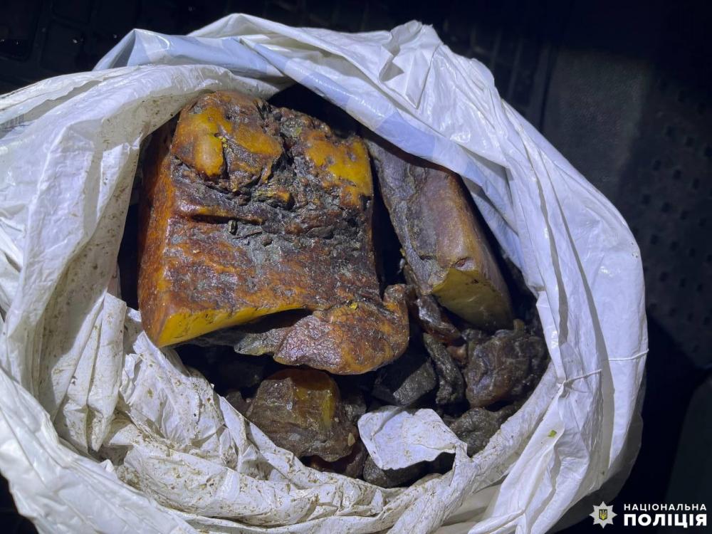 Як повідомили в пресслужбі поліції, під час візуального огляду правоохоронці виявили під водійським сидінням підозрілий пакет, в якому містилося каміння бурштину-сирцю. Від будь-яких пояснень чоловік відмовився.