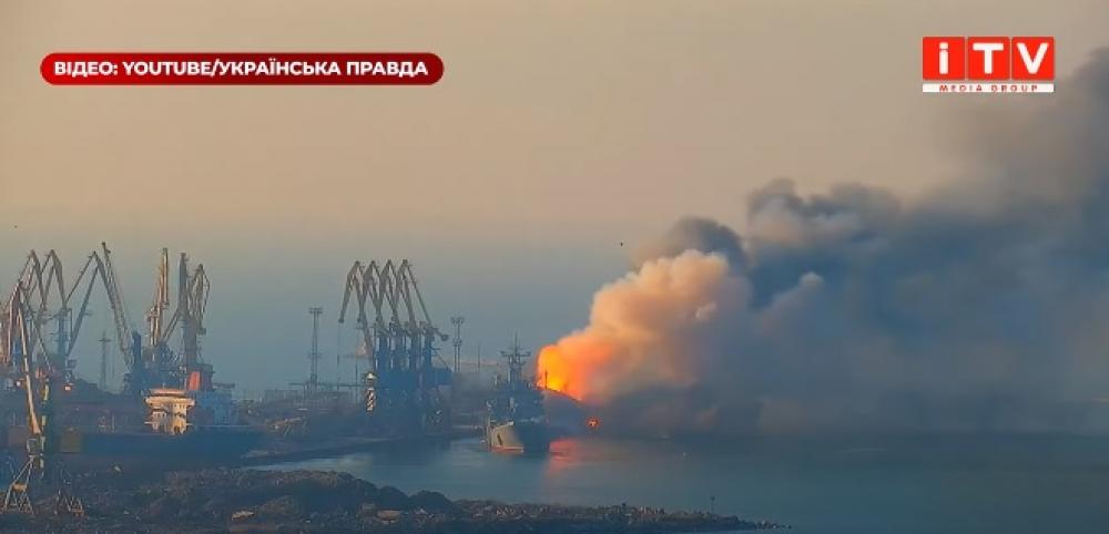 Доброго ранку ми з України! В захопленому рф порту Бердянськ знищено великий десантний корабель «Орск» чорноморського флоту окупантів.