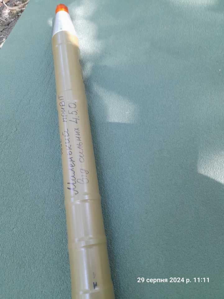 Та одним дороговказом не обійшлися. Також, за словами дубенчанки, ЗСУ передали росіянам вибухові подарунки від волонтерів з Рівненщини. Так на одному зі снарядів пише: