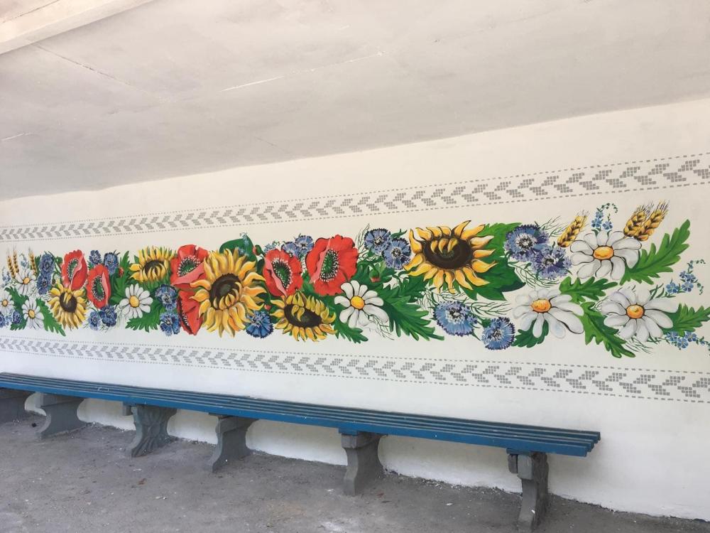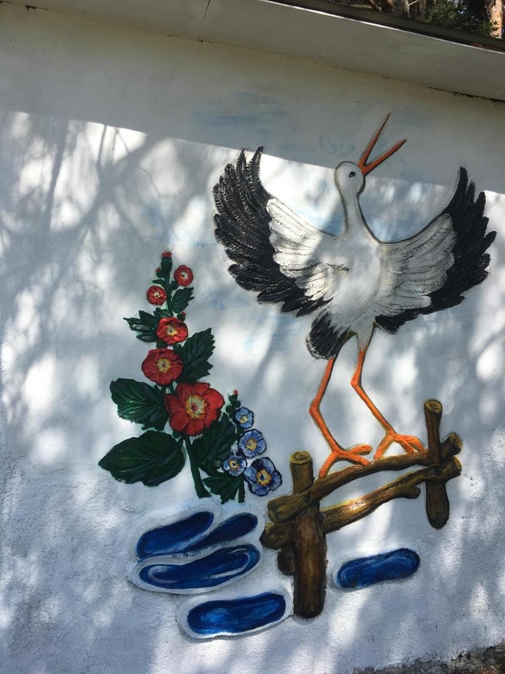 Окрім реставрації, спільно із художницею Наталією Романюк створили й ураїнський стінопис. Ініціатори розповідають, що зображені на ньому палітра квітів, український орнамент та птах, символізує заклик на повернення наших воїнів. Усе, як в давній пісні «Повертайтесь, лелеки, до отчого дому…».