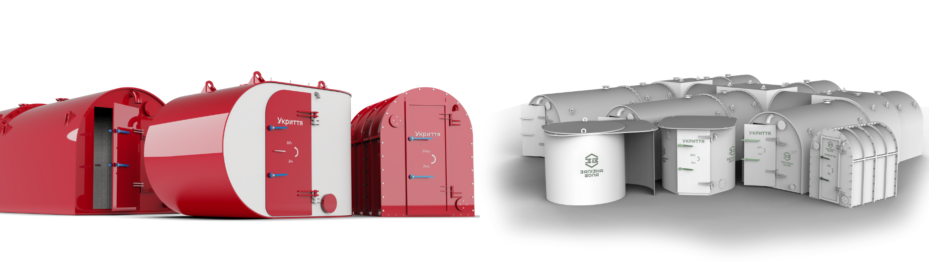 Модельний ряд компанії налічує понад 10 різних укриттів під будь-які потреби, бюджети та ситуації. Фахові менеджери легко знайдуть рішення для будь-якого рівня складності, а також підберуть найдоцільнішу модель у розрізі ціни, місткості, місця встановлення, наближення до лінії фронту, можливих засобів ураження, потреб у додаткових зручностях чи особливостях. Місткість укриттів компанії варіюється від 4 осіб до понад 1000! Можливі укриття як для складів, цехів, офісів, квартир, так і для встановлення в полі, далеко від цивілізації. Така варіативність дозволяє вберегти людей у найрізноманітніших сферах та галузях: приватні домогосподарства, школи, дитсадки, лікарні, підприємства, офіси, аграрний сектор, ДСНС та багато інших.