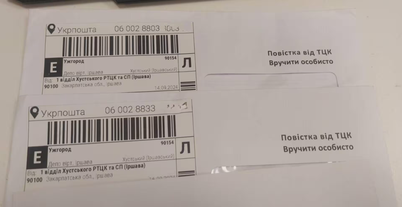 Перші надіслані "Укрпоштою" повістки вже отримали поштові відділення на Закарпатті. Повістки, сформовані Реєстром військовозобов'язаних і підписані електронними підписами начальників територіальних центрів комплектування та соціальної підтримки (ТЦК та СП), мають спеціальний QR-код. Вони друкуються "Укрпоштою" та надсилаються за домашніми адресами військовозобов'язаних.