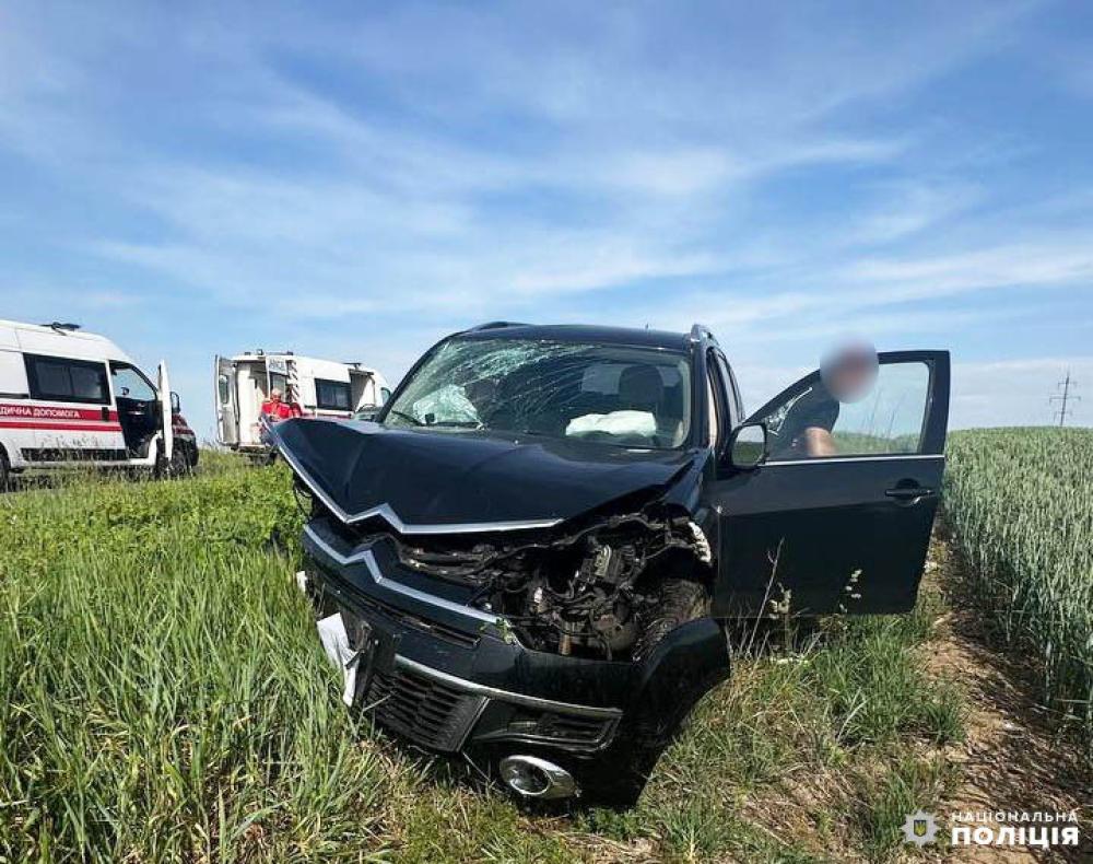 Попередньо відомо, що водій автомобіля «Citroen» виїхав на смугу зустрічного руху, де допустив зіткнення із легковиком «Ford». Від удару «Citroen» викинуло в поле.