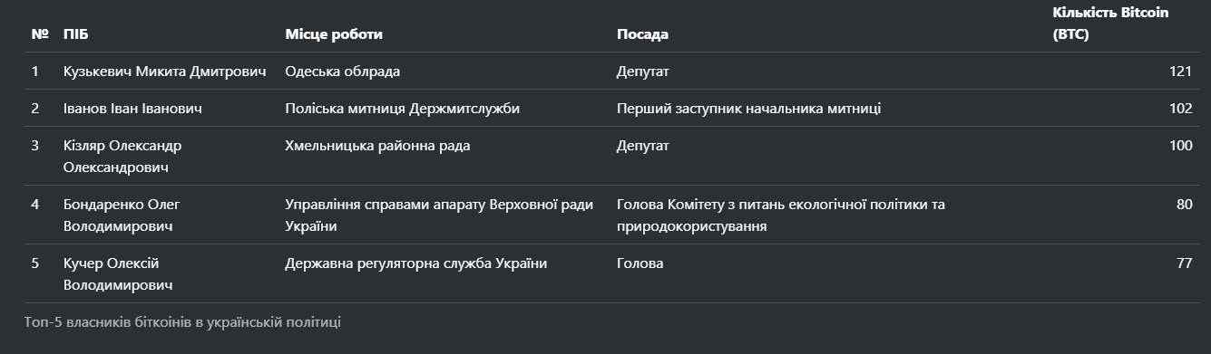 Перший заступник начальника Поліської митниці Іван Іванов задекларував 102 біткоіни. На сьогодні це більше 200 млн грн. Таким чином він потрапив до списку посадовців, які задекларували найбільшу кількість біткоїнів.