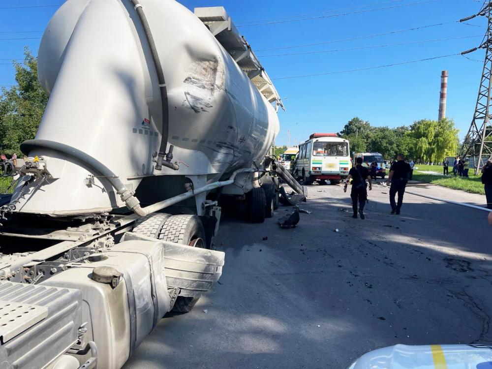 Слідчий на місці події попередньо з’ясував, що 62-річний водій маршрутки, з невстановлених поки причин, виїхав на зустрічну смугу руху, де допустив зіткнення із вантажним автомобілем «Renault» із цистерною під керуванням 50-річного жителя села Копитків.