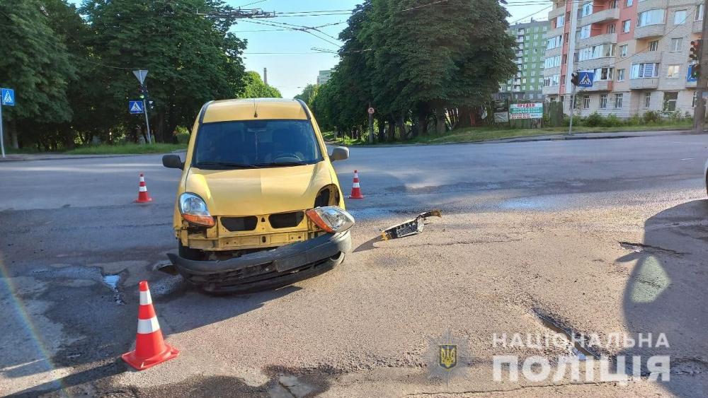 Попередньо встановлено, що на регульованому перехресті вулиць Соборна-Корольова сталося зіткнення автомобіля «Renault Kangoo» та мотоцикла.