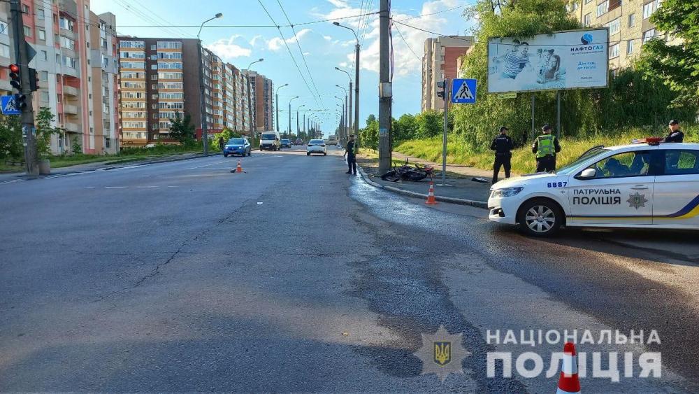 Внаслідок ДТП водія двоколісного доставили до лікарні, де у нього діагностували полі травму, травму голови, закритий перелом кісток стопи та забої.