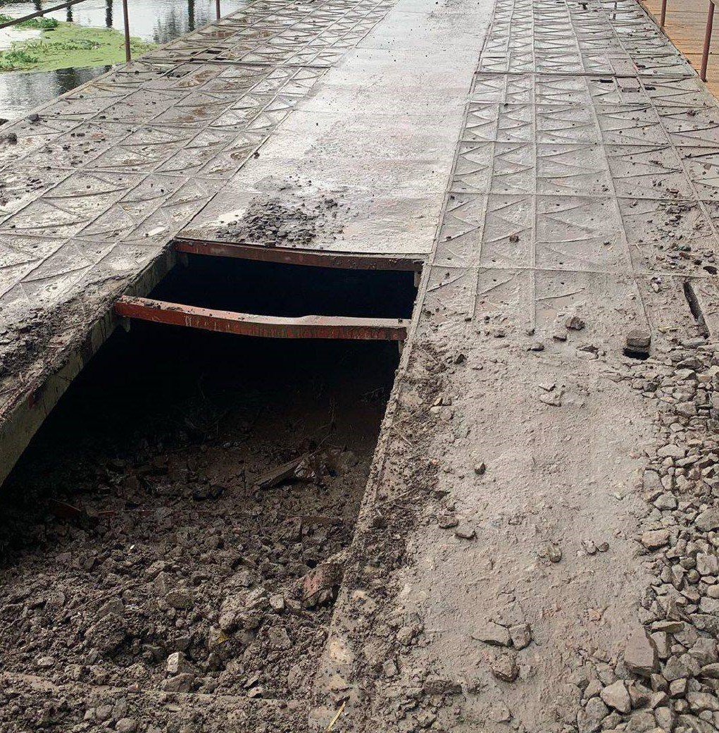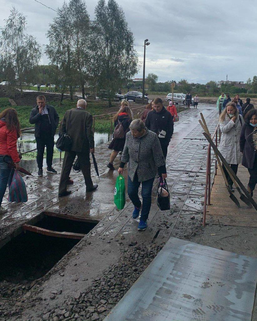 Відомо, що міст закрили для транспорту через велику дірку. Люди, які покинули автобуси, тимчасово змушені були переходити через пошкоджений міст.