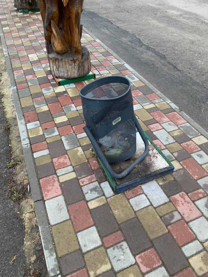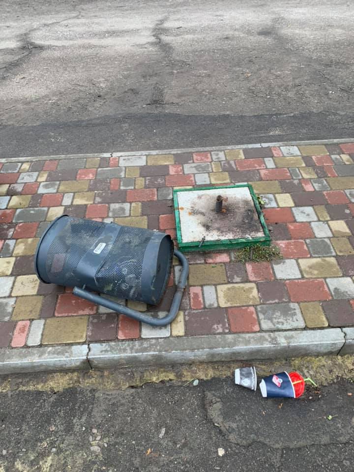 Невідомі пошкодили урни, а окремі повиривали. Сьогодні комунальники вже все прибрали.