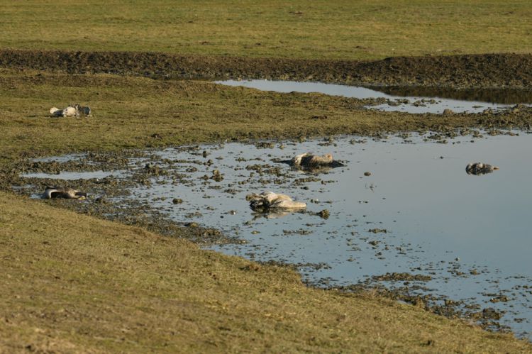 В зграї сірих журавлів, які занесені до Червоної Книги України, частина особин не подає ознак життя. Інші ледь тримаються на ногах та харкають кров’ю, а це може свідчити про внутрішню кровотечу. Щодня тут підбирали нових і нових загиблих пернатих, і на сьогодні їхня кількість вже досягла 185.