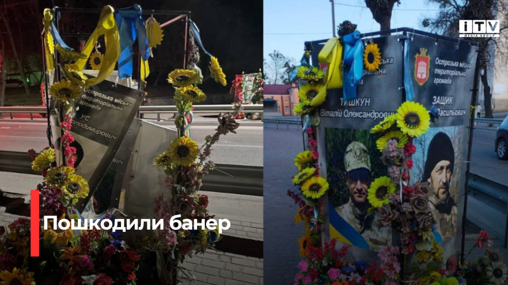 17 березня вночі на алеї Героїв у Острозі був пошкоджений один із банерів.