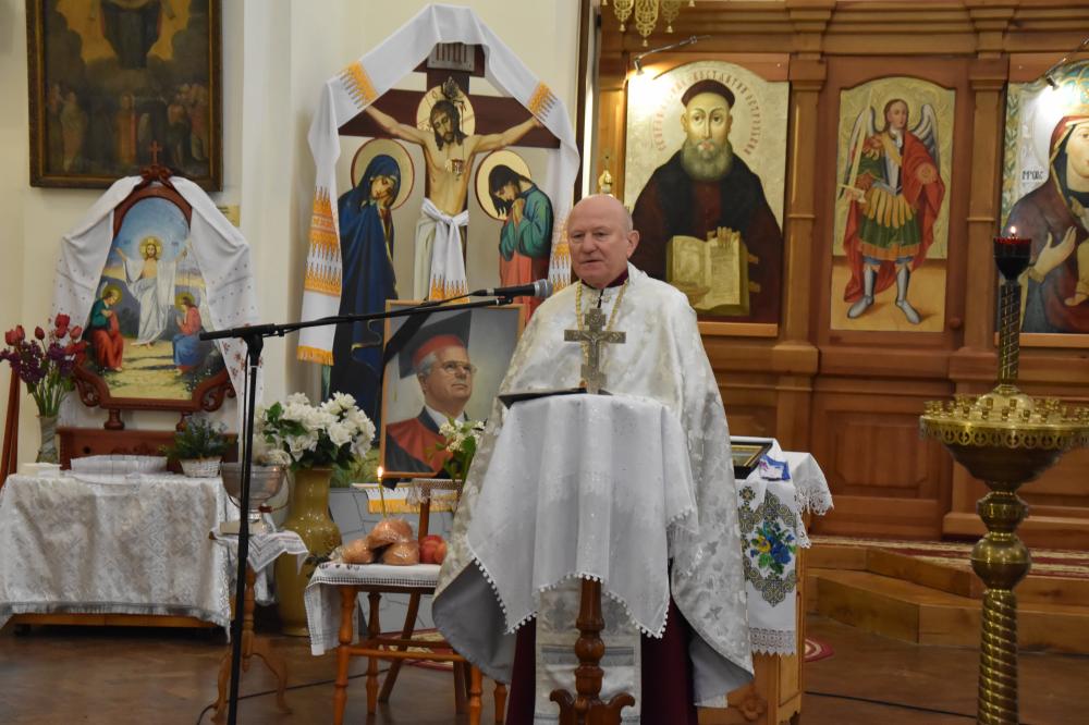 «Леонід Макарович Кравчук був нашим земляком, освітянином, педагогом, науковцем, якому на долю прийшли велике випробування, надзвичайна відповідальність і честь перед українським народом – вивести його з Радянського Союзу і привести в незалежну державу. Ми абсолютно впевнені, що на той час не було жодної іншої людини, яка б належним чином, з народною мудрістю, провела українську націю через підводні камені партійності, політичної боротьби, внутрішньої і зовнішньої кон’юнктури. Це зробив Леонід Макарович Кравчук – видатна особистість, яку історики по-справжньому ще оцінять у свій час. Він відомий політичний діяч, перший голова Верховної Ради України, Герой України, нагороджений численними орденами і медалями за заслуги перед нашою державою. Також Леонід Кравчук зробив багато для Острозької академії і невідомо, якою була б подальша доля нашого славетного навчального закладу, якби він не видав у свій час перший Указ «Про утворення Острозького колегіуму». Леонід Макарович постійно цікавився і підтримував Острозьку академію на всіх етапах її розвитку. Ми молилися сьогодні, щоб пам’ять про Леоніда Кравчука передавалася з роду в рід і завжди була з нашим Героєм. Нехай з Богом спочиває Леонід Макарович Кравчук – мудра, непересічна, віддана українському народові людина», – зазначив настоятель храму, протоієрей, професор Василь Жуковський.
