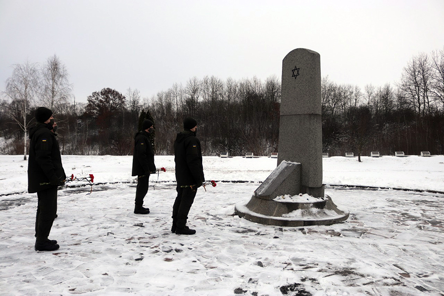 Нацгвардійці військової частини 3055 вшанували пам’ять жертв Голокосту в урочищі Сосонки у Рівному. Саме тут 6 листопада 1941 року було розстріляно та поховано 17500 євреїв. На місці величезного поховання з часом було встановлено меморіал.