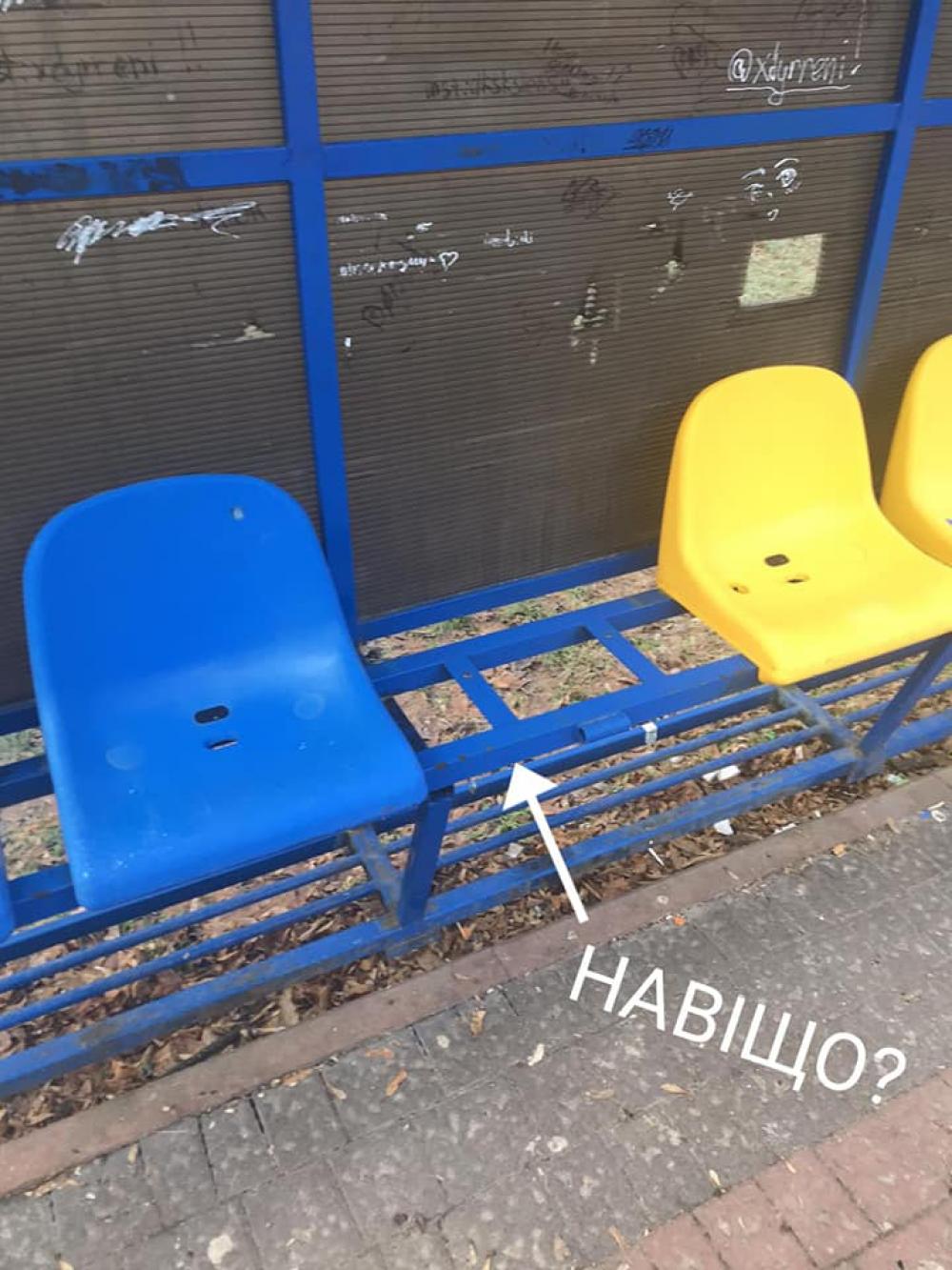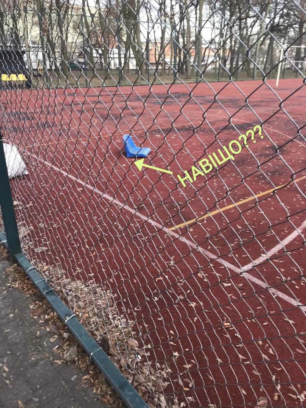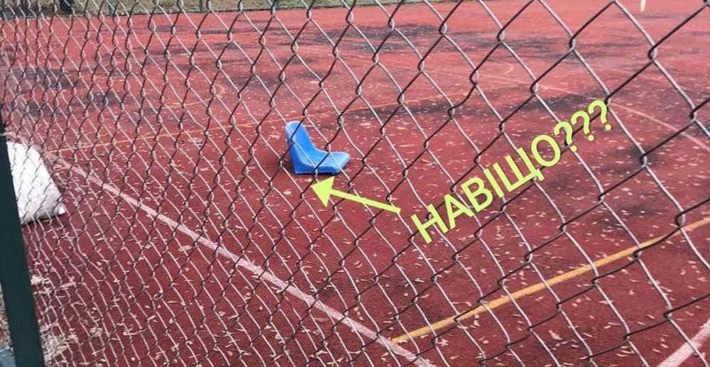 Хтось варварськи пошкодив глядацькі сидіння на спортмайданчику.