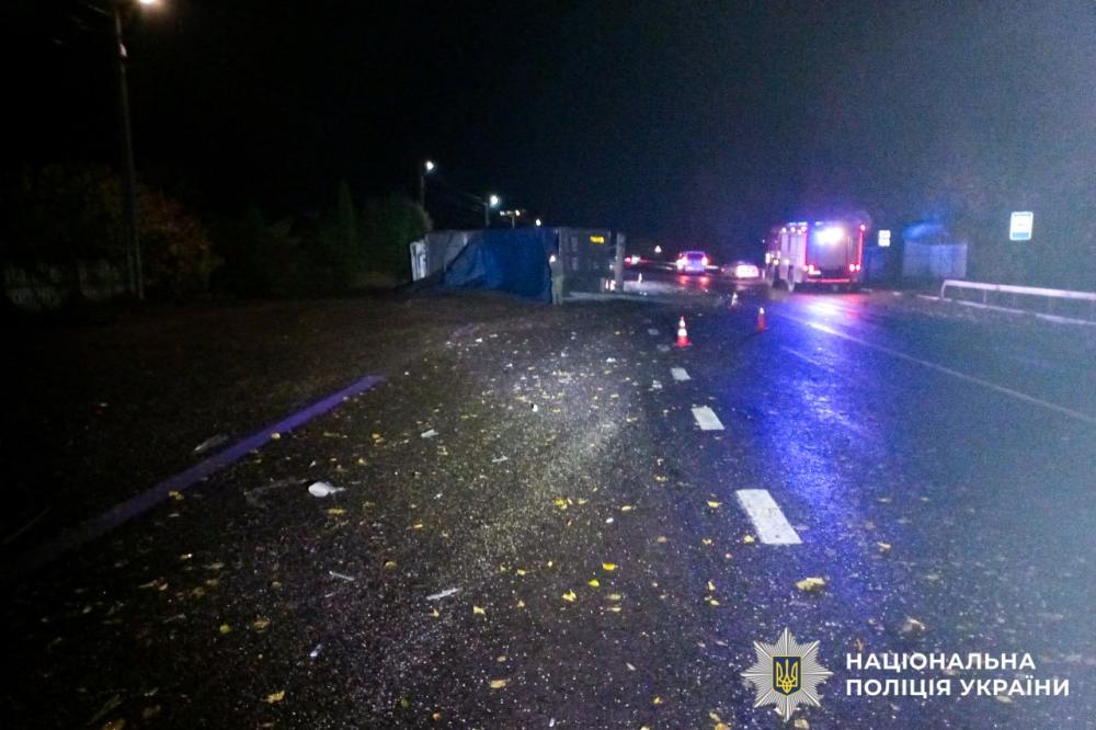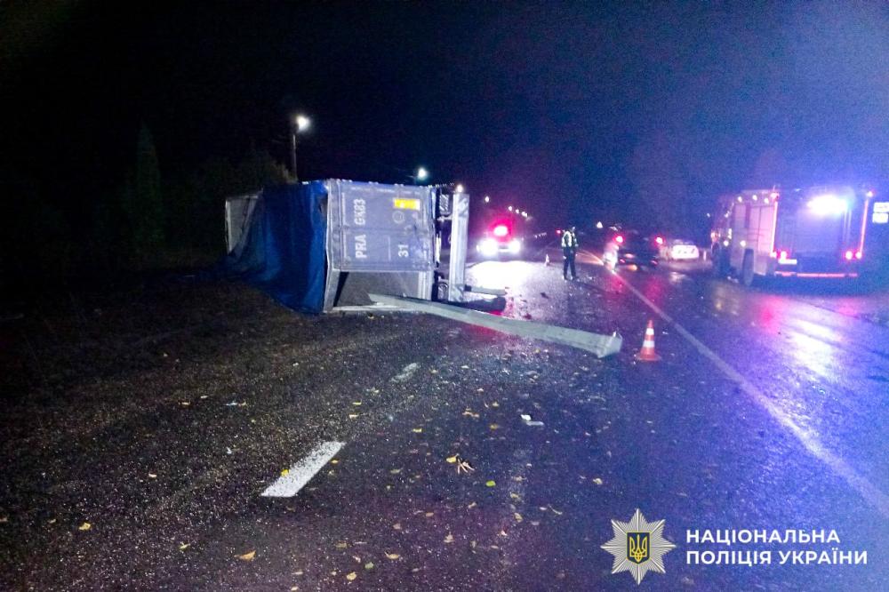 Водія вантажівки, якого затиснуло у салоні, деблокували рятувальники. У потерпілого медики діагностували перелом тіла лопатки та множинні забої.