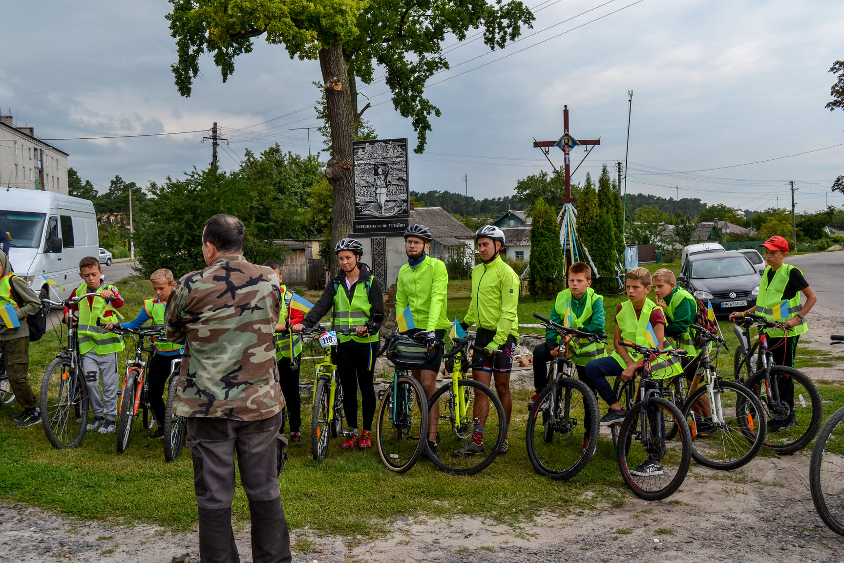 Велопробіг стартував у знаковому місці – біля нещодавно встановленого пам'ятника «Борцям за волю України», на якому зображена унікальна гравюра Ніла Хасевича. Автор ідеї Віталій Міщук розповів про цінність постаменту, його історію та значення для Смизької громади та Рівненщини в цілому.