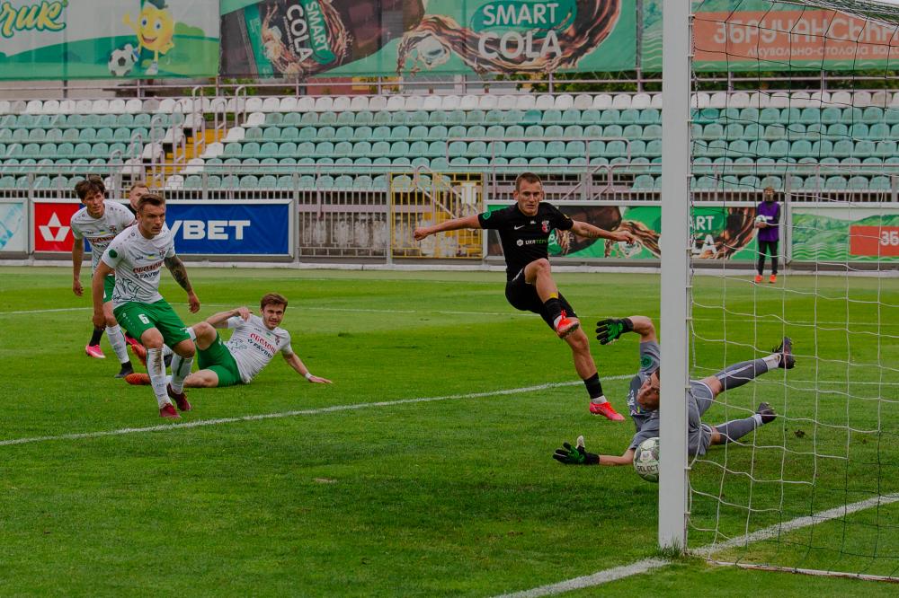 У поточному матчі через перебір карток рівнянам не зміг допомогти капітан Михайло Шестаков. Однак, це не завадило саме гостям створити перший гострий момент. Рівняни заробили штрафний. Роман Гоначренко бив на виконання, проте господарів від голу врятувала поперечина.
