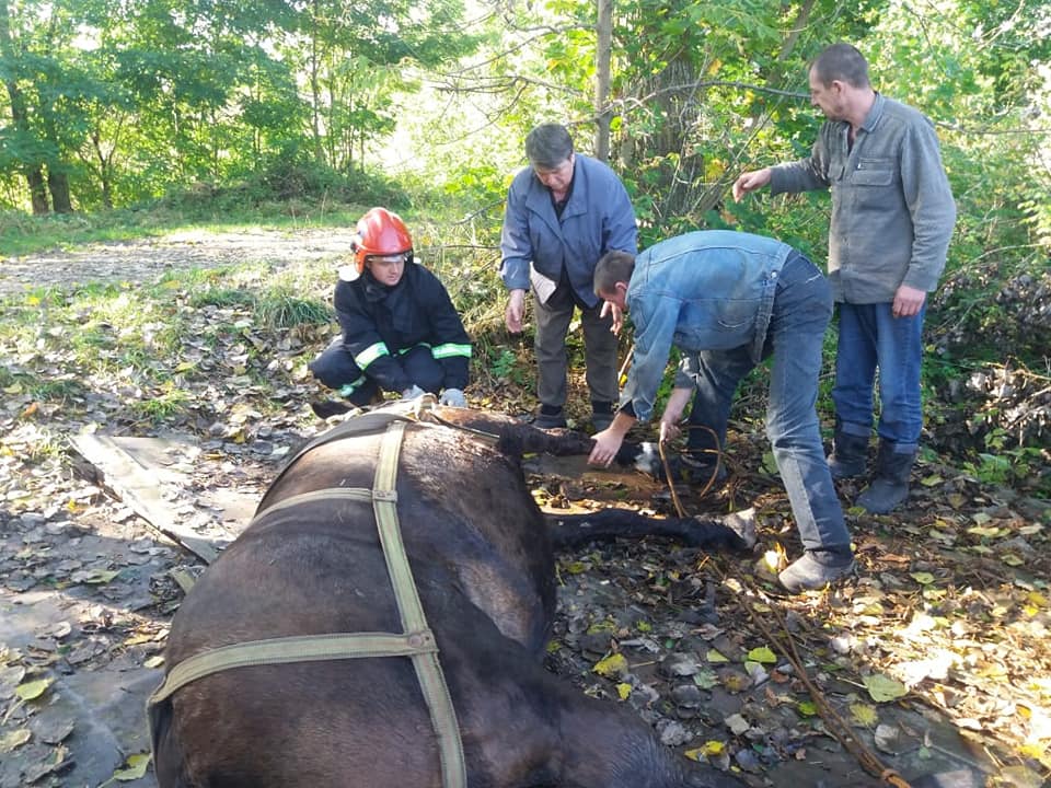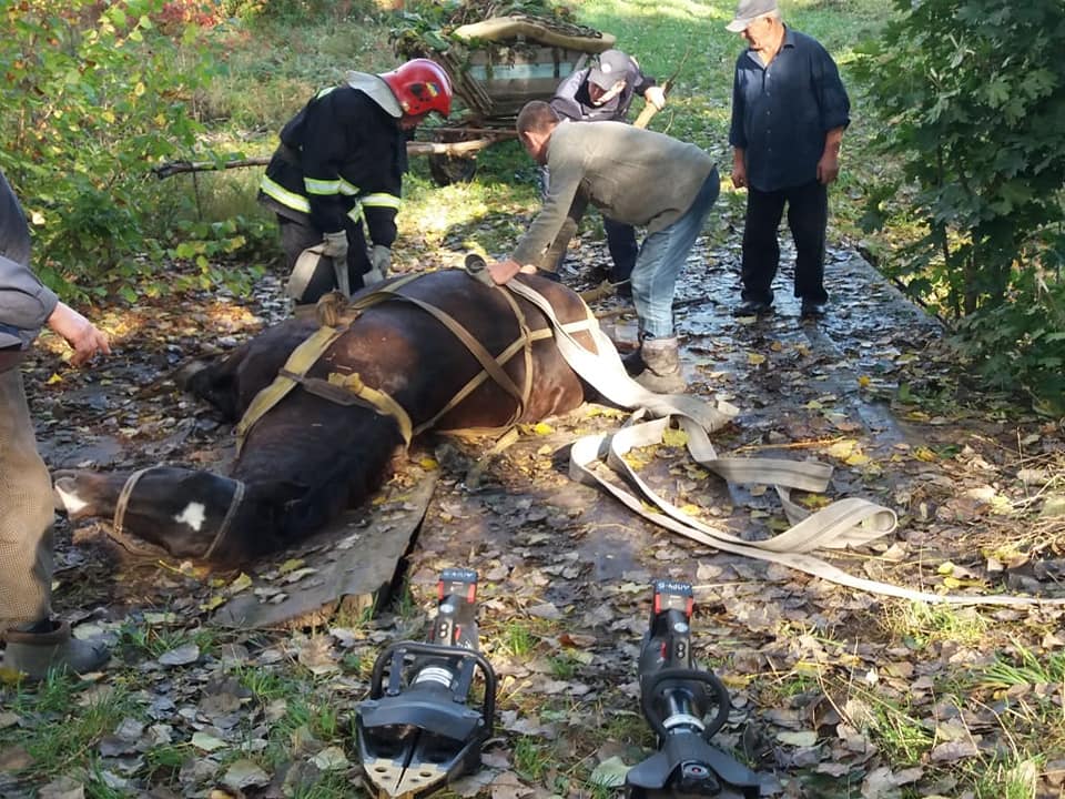 Обв'язавши тварину мотузками, рятувальники підняли її на ноги. Кобила травм не отримала.