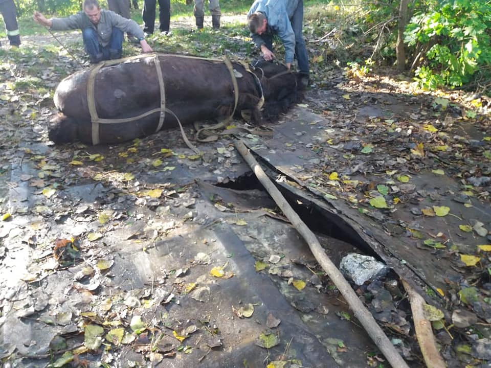 На Дубенщині рятувальники допомогли селянам звільнити свійську тварину, що провалилася під міст.