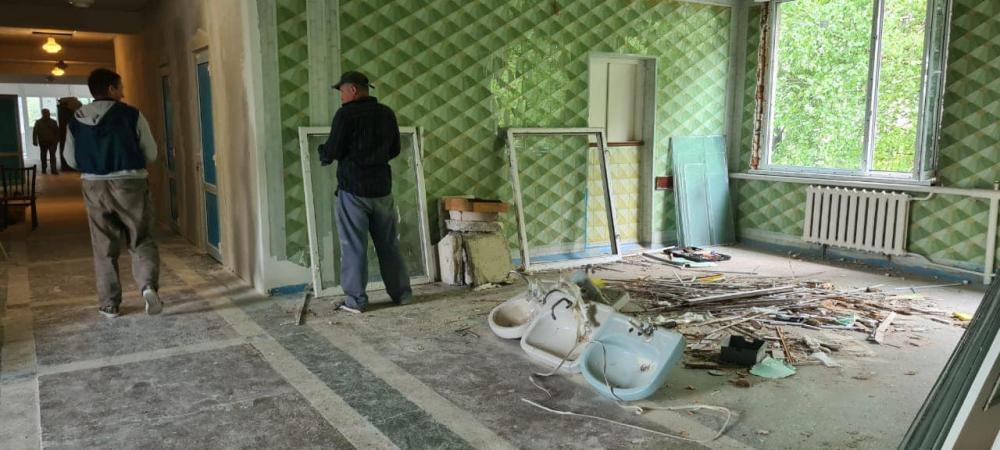 На черзі - шпаклювання відкосів вікон і дверей, облаштування санвузлів, фарбування стін у кабінетах і коридорі.
