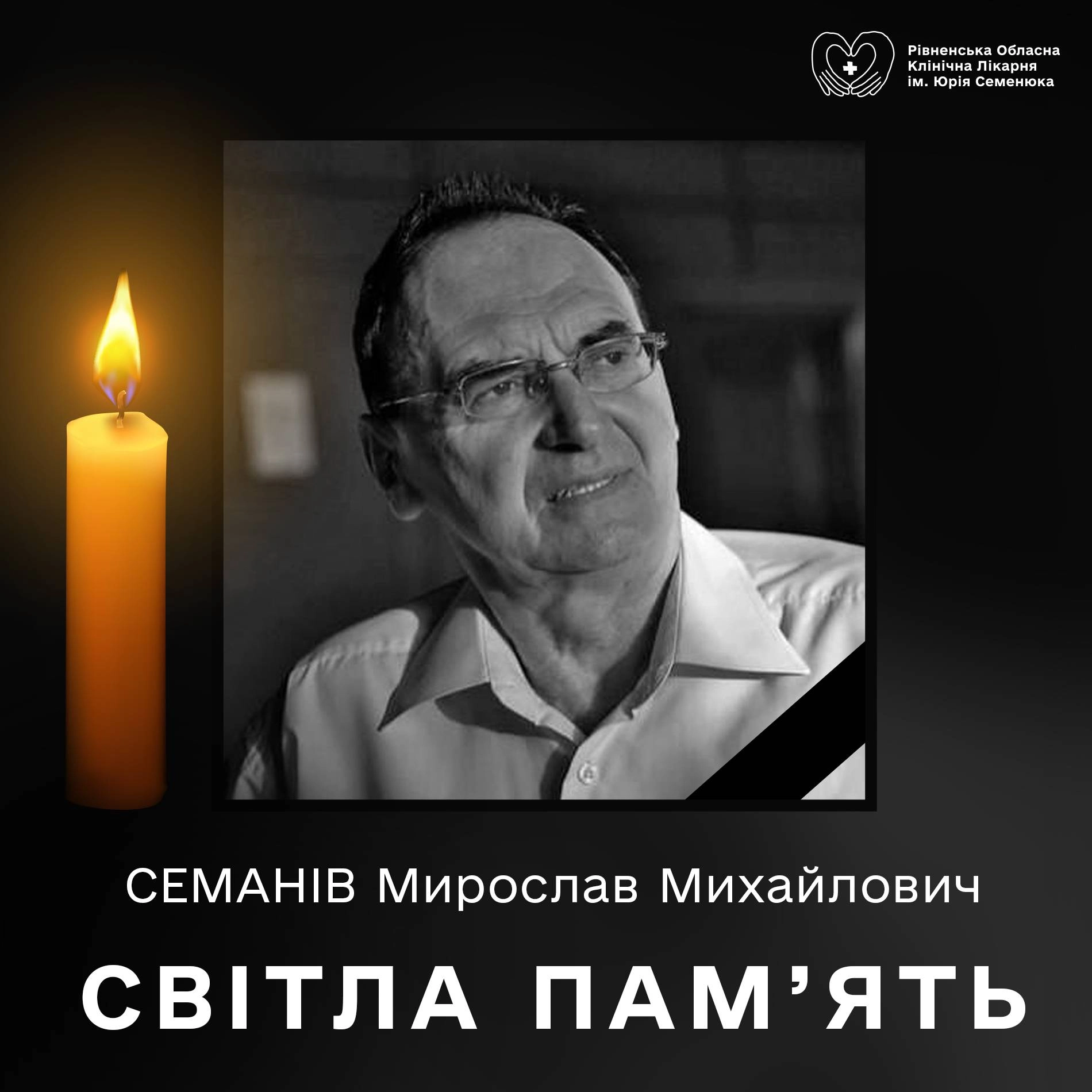 На 85-му році життя помер Мирослав Семанів – заслужений лікар України, колишній головний лікар Рівненської обласної клінічної лікарні, начальник управління охорони здоров’я області (2005 р.), депутат Рівненської обласної ради IV та V скликань.