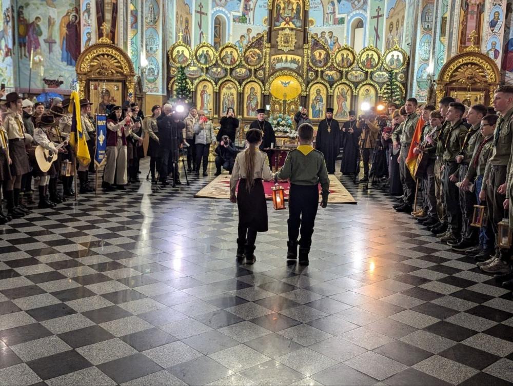 У храмі зібралися десятки пластунів Рівненщини, щоб до свята Різдва Христового встигнути донести цей символ любові, добра та миру в кожну громаду.