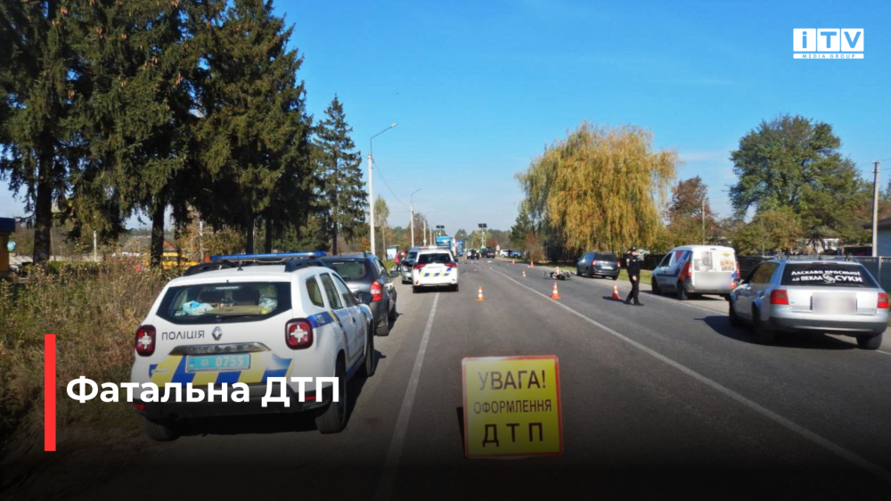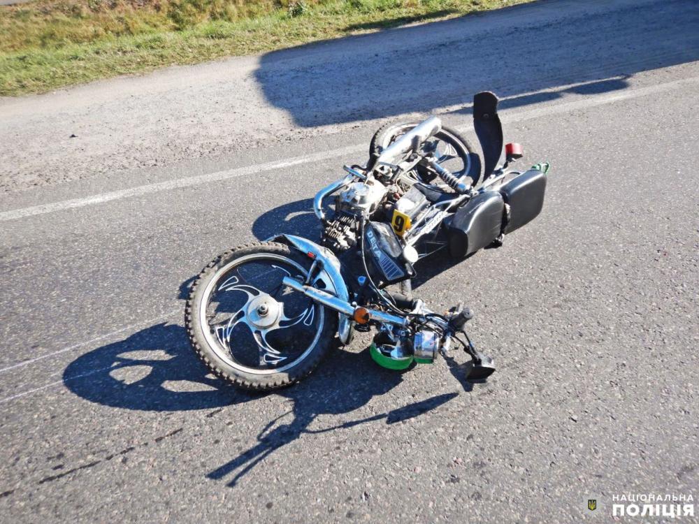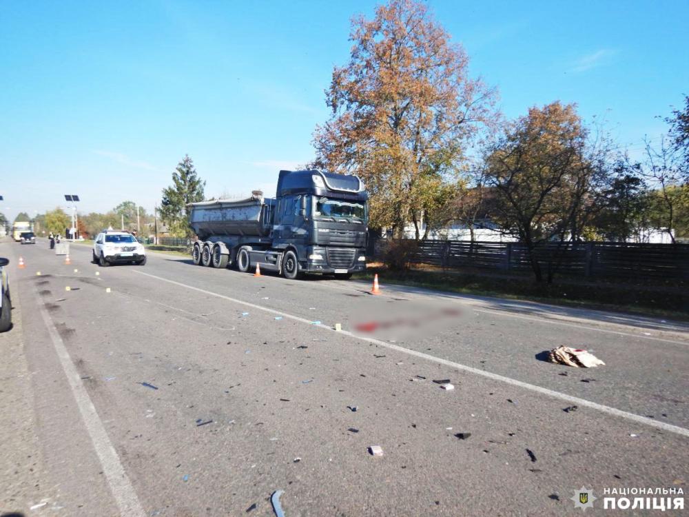 Внаслідок ДТП керманич двоколісного загинув на місці події. Пасажира цього ж транспортного засобу із відкритими переломами ноги та руки госпіталізували до лікарні. Обоє чоловіків були без мотошоломів.