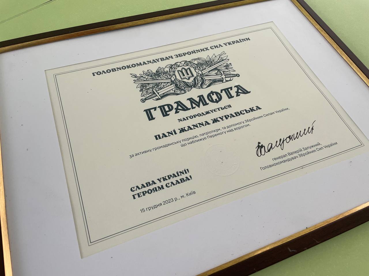 Головнокомандувач ЗСУ Валерій Залужний нагородив грамотою виховательку одного з дитячих садочків Рівного.