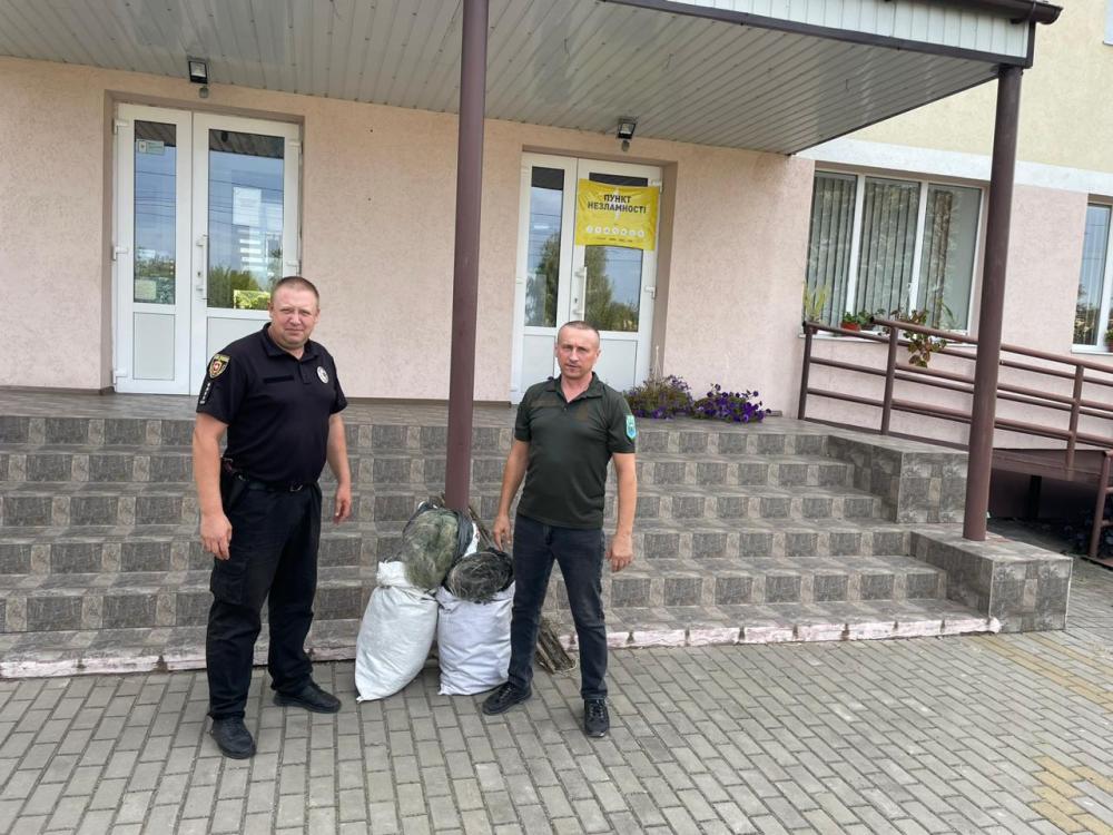 На прохання Деражненської ТГ Рівненського району місцеві волонтери, які займаються виготовленням маскувальних сіток для оборонців України, передали вилучені під час проведення заходів контролю браконьєрські сітки, власники яких не були встановлені.