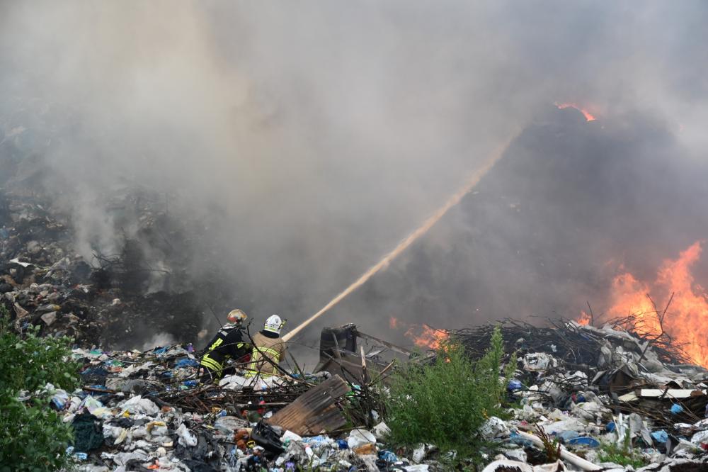 Рятувальники ліквідовують пожежу на сміттєзвалищі поблизу села Бармаки міста Рівного. Повідомлення про пожежу на сміттєзвалищі надійшло сьогодні, 17 липня, на спецлінію "101" о 16:59.