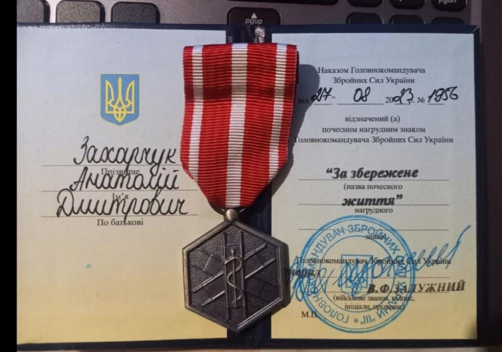 До слова, нагрудним знаком Головнокомандувача ЗСУ "За збережене життя" нагороджуються військовослужбовці, працівники ЗСУ, які врятували життя людині під час участі у воєнних діях чи ліквідації природних та техногенних катастроф, інших надзвичайних ситуацій.