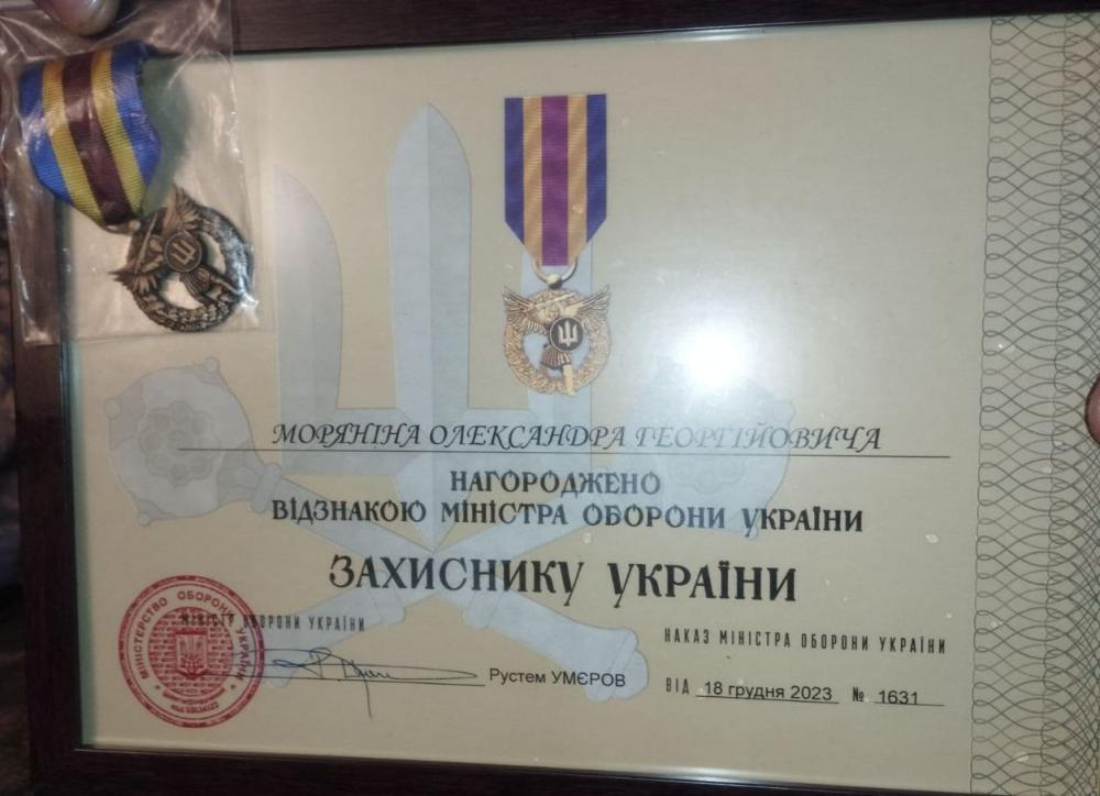 Олександр Морянін мешкає у селі Межиріч. 49-річного батька двох дітей було нагороджено відзнакою Міністра оборони України "Захиснику України", наказом Міністра оборони України Рустема Умєрова від 18 грудня 2023 року №1631.