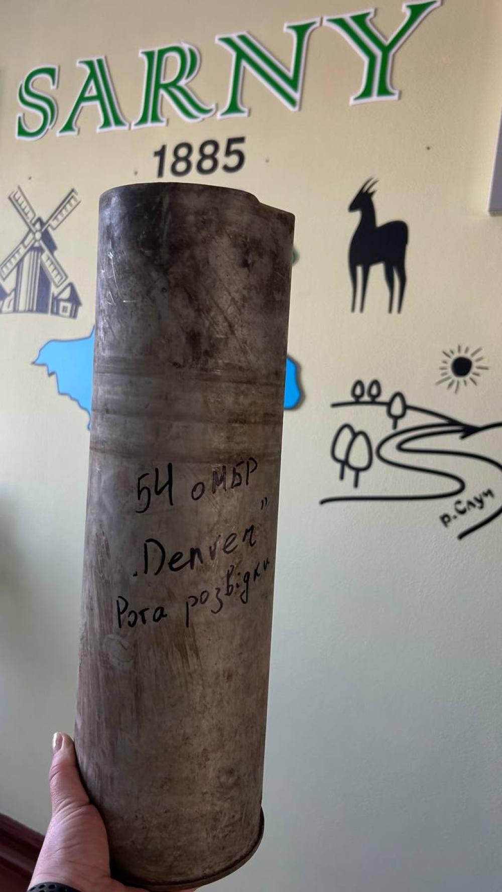 Як повідомили в Сарненській міській раді, днями чоловік передав до рідного міста гільзу від снаряда, яким знищив російський танк та всіх, хто перебував у ньому.