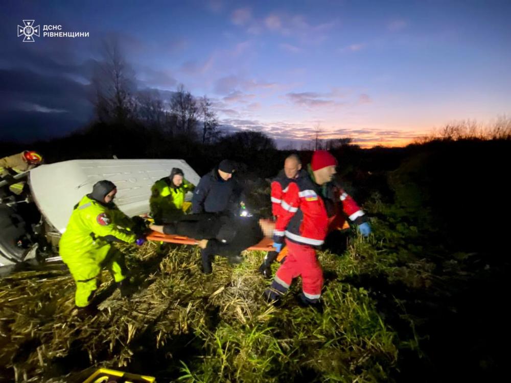 "Прибувши на місце виклику рятувальники встановили, що вантажний автомобіль, який перевозив хліб, з'їхав у річку Горинь. Водій був затиснутий внаслідок деформації авто. Бійці ДСНС, одягнувши костюми для крижаної води, за допомогою комбінованого розтискача провели деблокування травмованого чоловіка та допомогли транспортувати до карети швидкої медичної допомоги", - прокоментували в ГУ ДСНС України у Рівненській області.